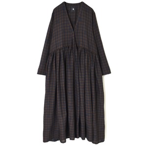 ウール100%のギンガムチェック生地の所々にジャカード柄(刺繍のように見える織り柄)を施した手間暇の掛かる生地をたっぷりと使用したワンピース。