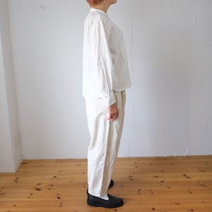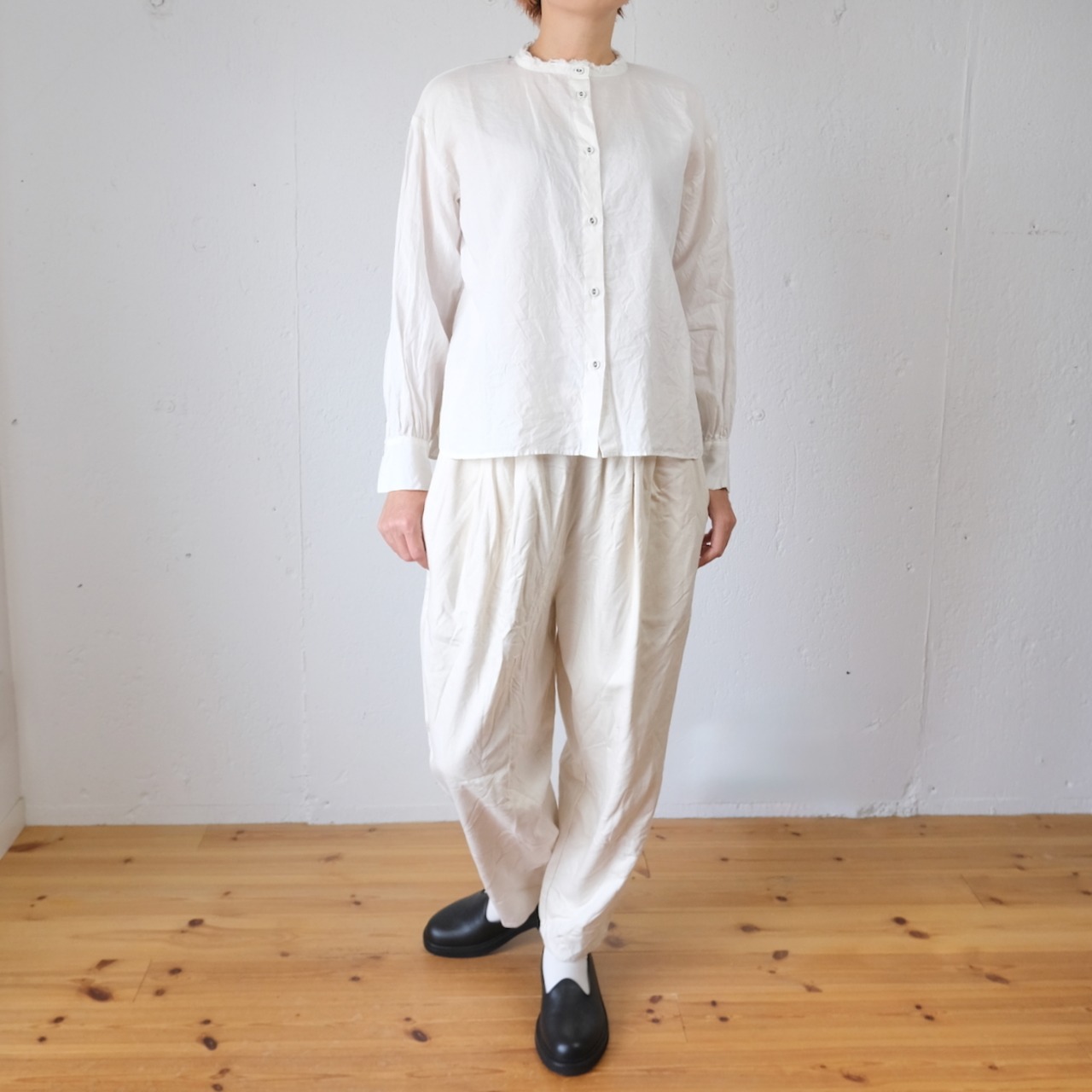 Gauze# (ガーゼ) ラミーシルク タイニーフリルカラー ブラウス:ホワイト