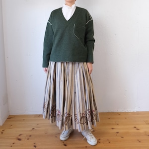 BUNON(ブノン) Hand Print & Dance Embroidery Balloon Skirt ストライプ+刺繍 スカート