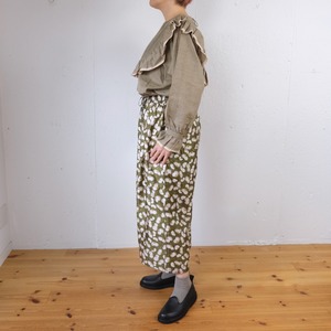 フリルの外周り・袖口・裾は生地耳が使われていて、